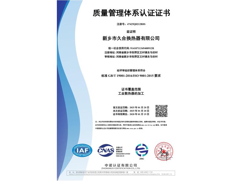久合換熱器始終秉持“科技立業(yè),真誠(chéng)奉獻(xiàn)”的經(jīng)營(yíng)理念。以優(yōu)良的質(zhì)量、完善的服務(wù),優(yōu)良的信譽(yù),致力于拓展國(guó)內(nèi)外市場(chǎng)。